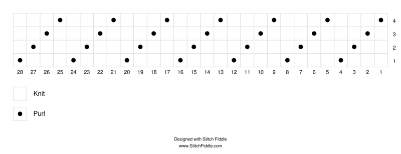 If you wish to make the same type of design on a different on a different knitting loom, the stitch pattern is a multiple of 4 stitches.