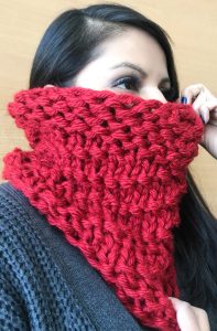 By the way–the video also shows how to switch yarn colors so your garter stitch rows are perfect and the contrasting color doesn’t show on your right-side of the fabric. In case you were wondering–switch colors after you have completed an entire garter stitch ridge repetition (both a knit row, and a purl row), switch color on the next repetition.